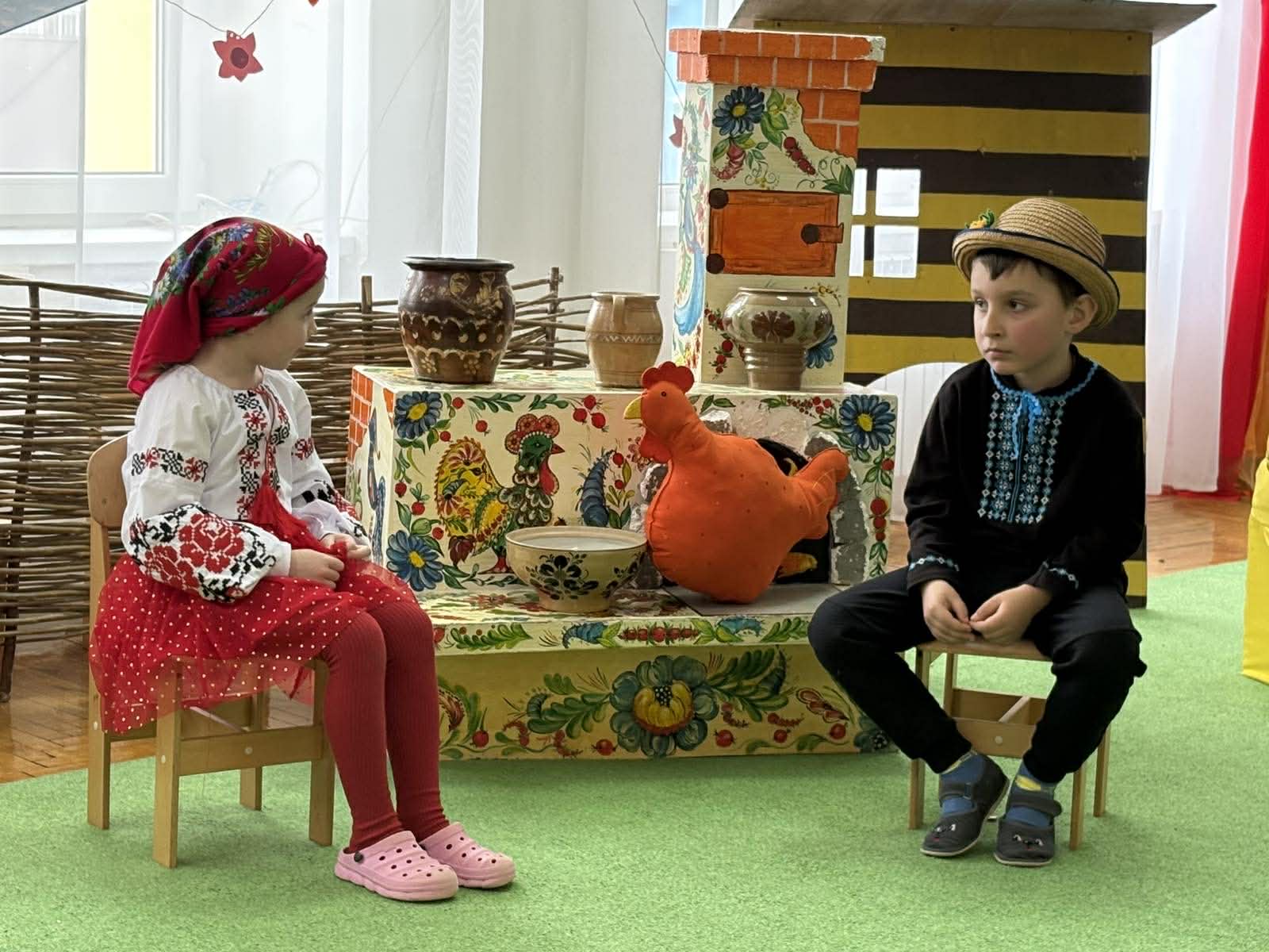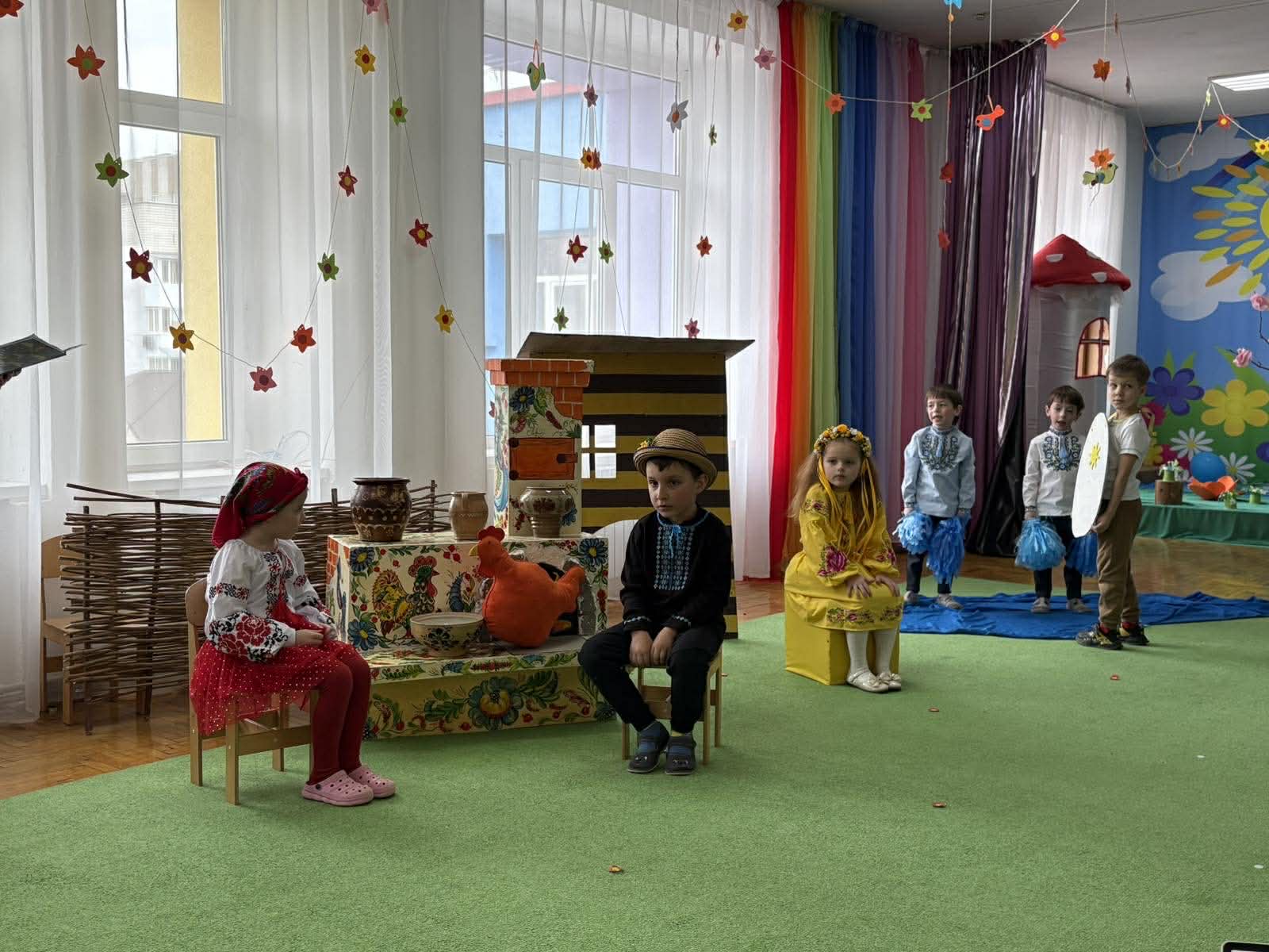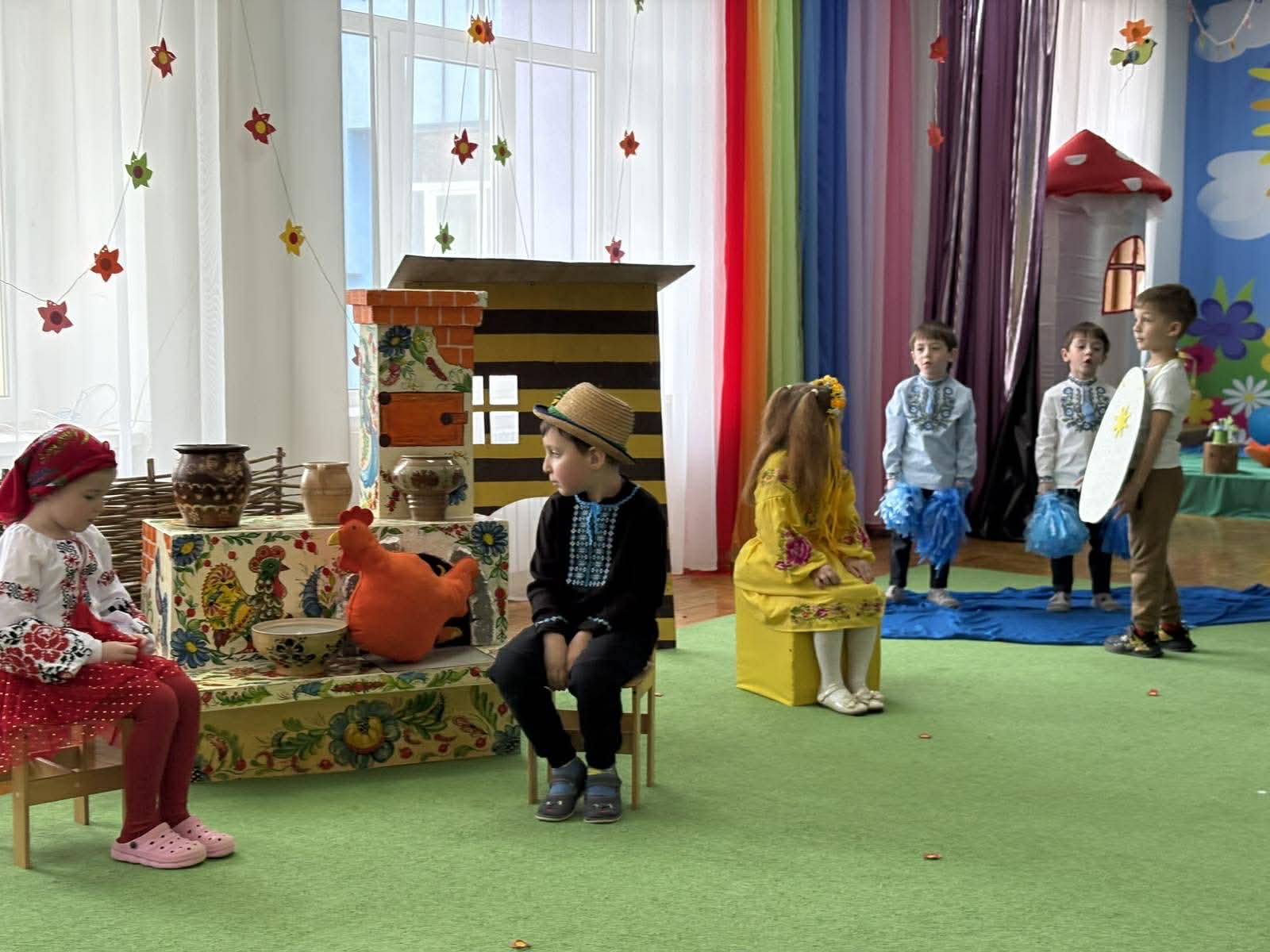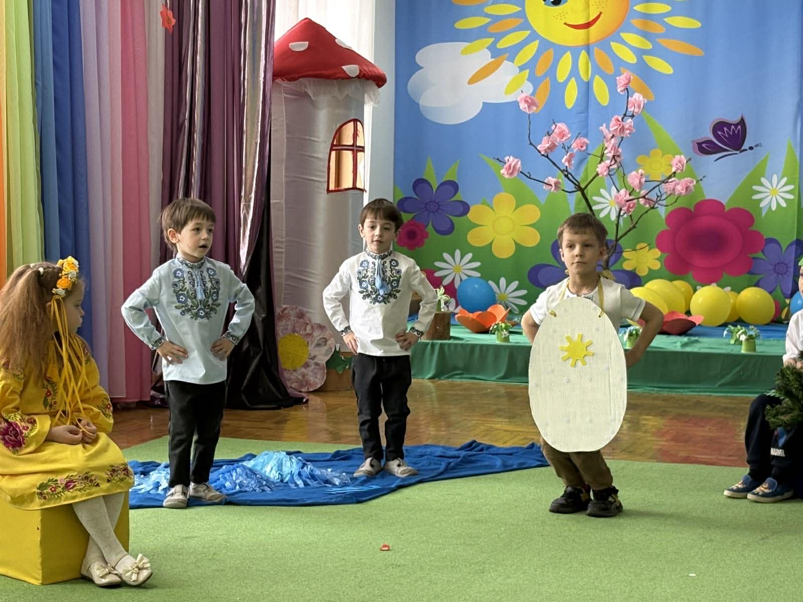 Дошкільнята групи старшого віку «Ромашка» ДНЗ №6 “Теремок» м. Трускавець інсценізували казку «Як яйце писанкою стало». Вихователі Оксана Бабич, Олена Нечипір.